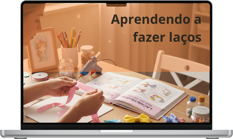 Você vai entender os tipos de fitas, ferramentas e combinações ideais, além de aprender os fundamentos que tornam qualquer laço bonito e vendável.