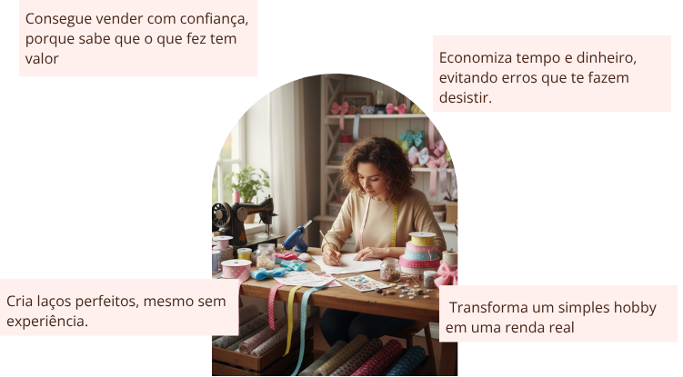 Você vai aprender, passo a passo, como escolher materiais, calcular custos, precificar corretamente e começar a vender com lucro — tudo de forma simples e prática, mesmo que nunca tenha feito um laço antes.